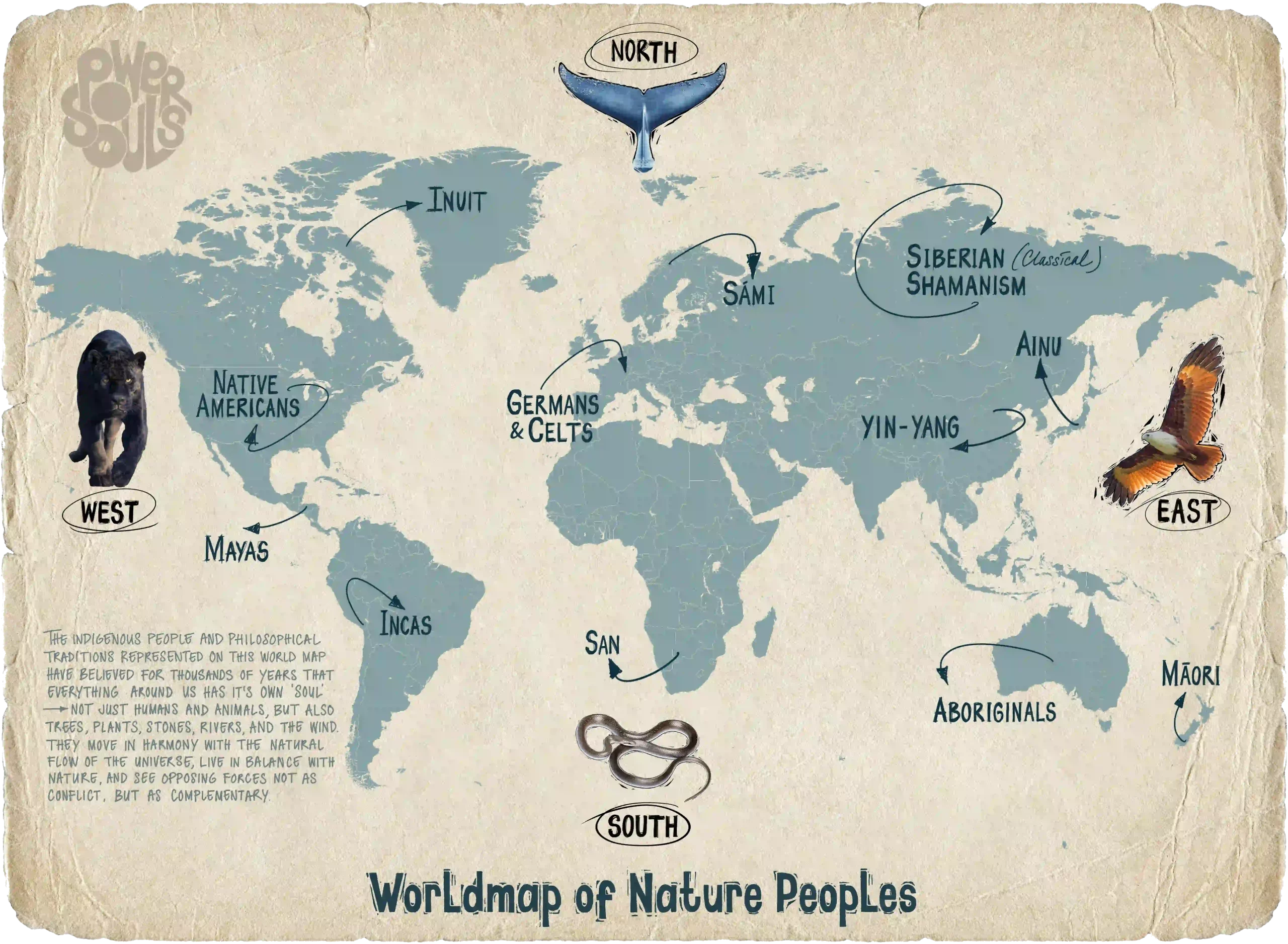 Sommigen zijn het vandaag vergeten, maar al duizenden jaren weten natuurvolkeren over de hele wereld dat we de natuur horen te respecteren — omdat we er zelf deel van uitmaken. We zijn zielsverwanten van de dieren en planten waarmee we samenleven op aarde, in het verleden, het heden en de toekomst. Samen vormen we de PowerSouls.